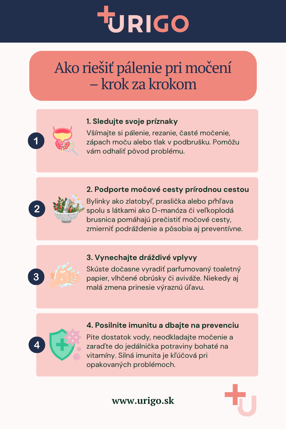 Infografika: Riešenie pálenia pri močení krok za krokom