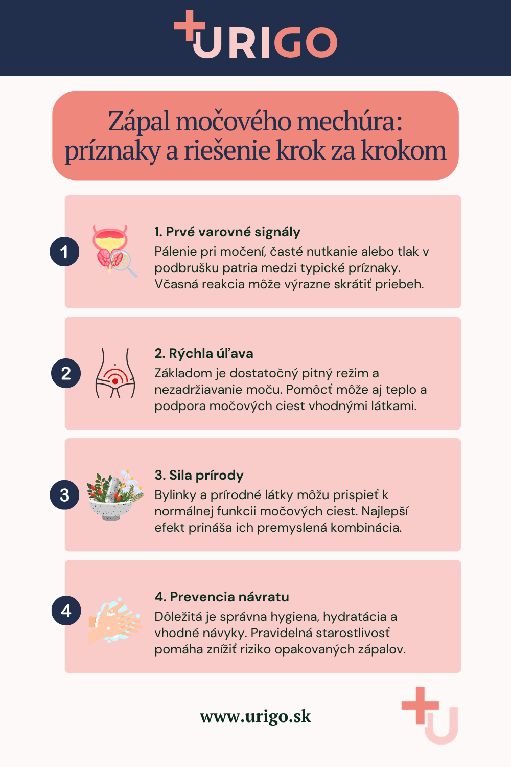 Pozor: Ak sa príznaky v priebehu niekoľkých dní nezlepšujú, zhoršujú sa alebo sa objaví horúčka, krv v moči či silná bolesť, je vhodné vyhľadať lekára.